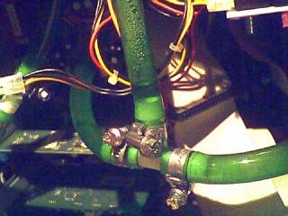 Napełniłem układ, odpowietrzyłem, postarałem się aby do w rurce pojawiło się trochę wody i jazda: POWER ON. Układ zadziałał woda zaczęła krążyć a bąbelki powstałe przy złym odpowietrzeniu powędrowały do wstawionego kawałka rurki. Ufff jak dobrze.
